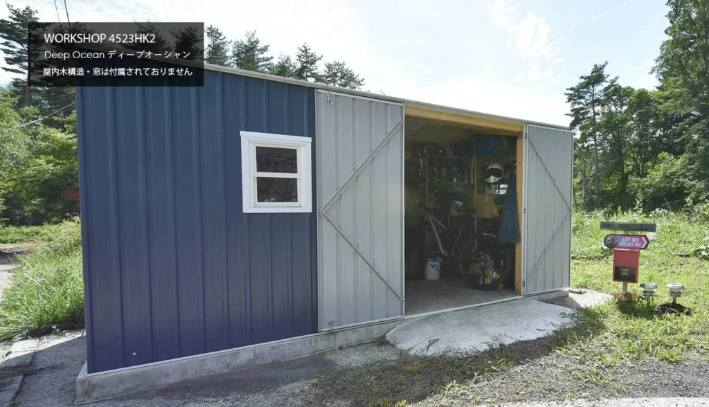 - EuroShed®︎ WORKSHOP 4523HK2(高さ2210mm):収納容量が大きく、ゆとりのあるハイルーフタイプ