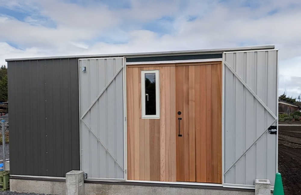 Bibury(バイブリー)様では、ユーロ物置4523HK2(ウッドランドグレー)を実際の展示品として活用されています。
