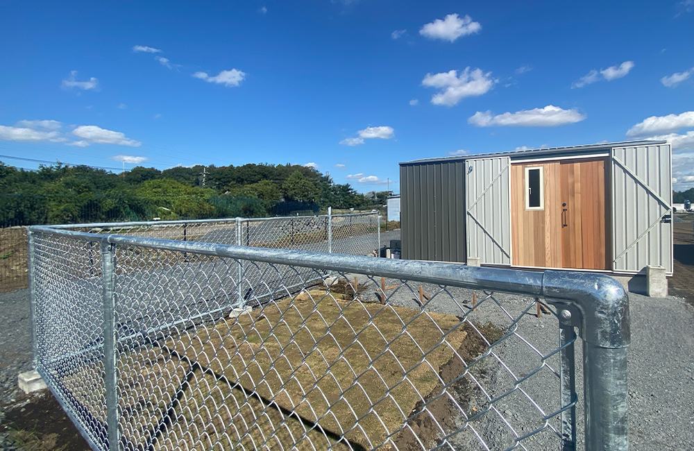 外にはリウッドデッキやアメリカンフェンスを設置し、来場者が心地よく過ごせる空間を整備中。