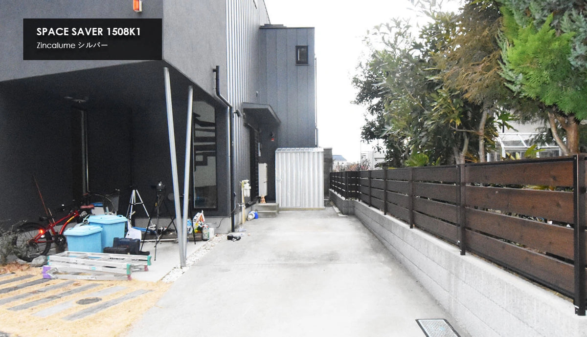 | サイズ | 間口:1520mm 奥行:780mm 軒高:1800mm 最高高:1950mm | 開口寸法 約W750mm × H1725mm ドア枚数:1枚 | |