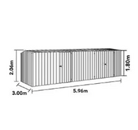 | サイズ | 間口:5960mm 奥行:3000mm 最高高:2060mm 開口寸法:約W1500mm×H1725mm ドア枚数:3枚 | |