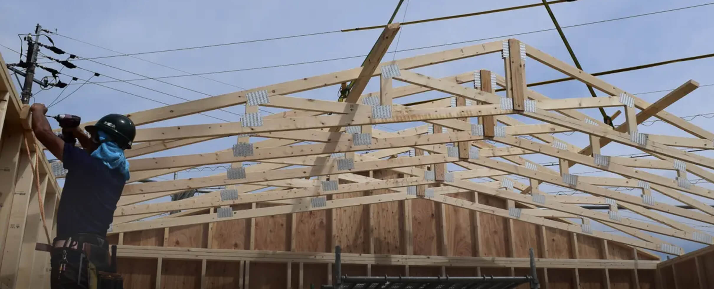 木造ガレージを自社工場で加工し、現場にて組み立てます。